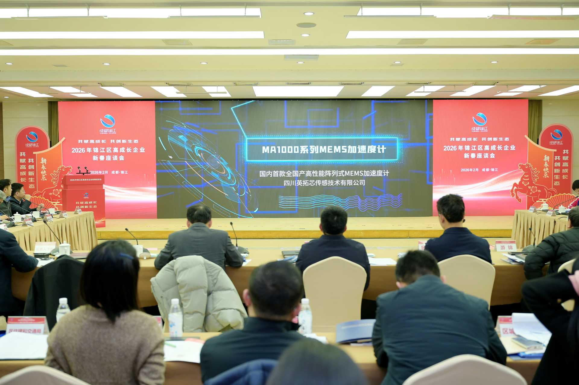 此外,座谈会还首发了6款硬核产品:全球首个无线干电极神经性情绪康复系统“芯铂氏情绪数字化调控系统”、国内首款全国产高性能阵列式MEMS加速度计MA1000系列……这些“锦江造”从脑机接口到高端传感器,正加速从实验室走向市场,成为区域创新能力的核心动力。