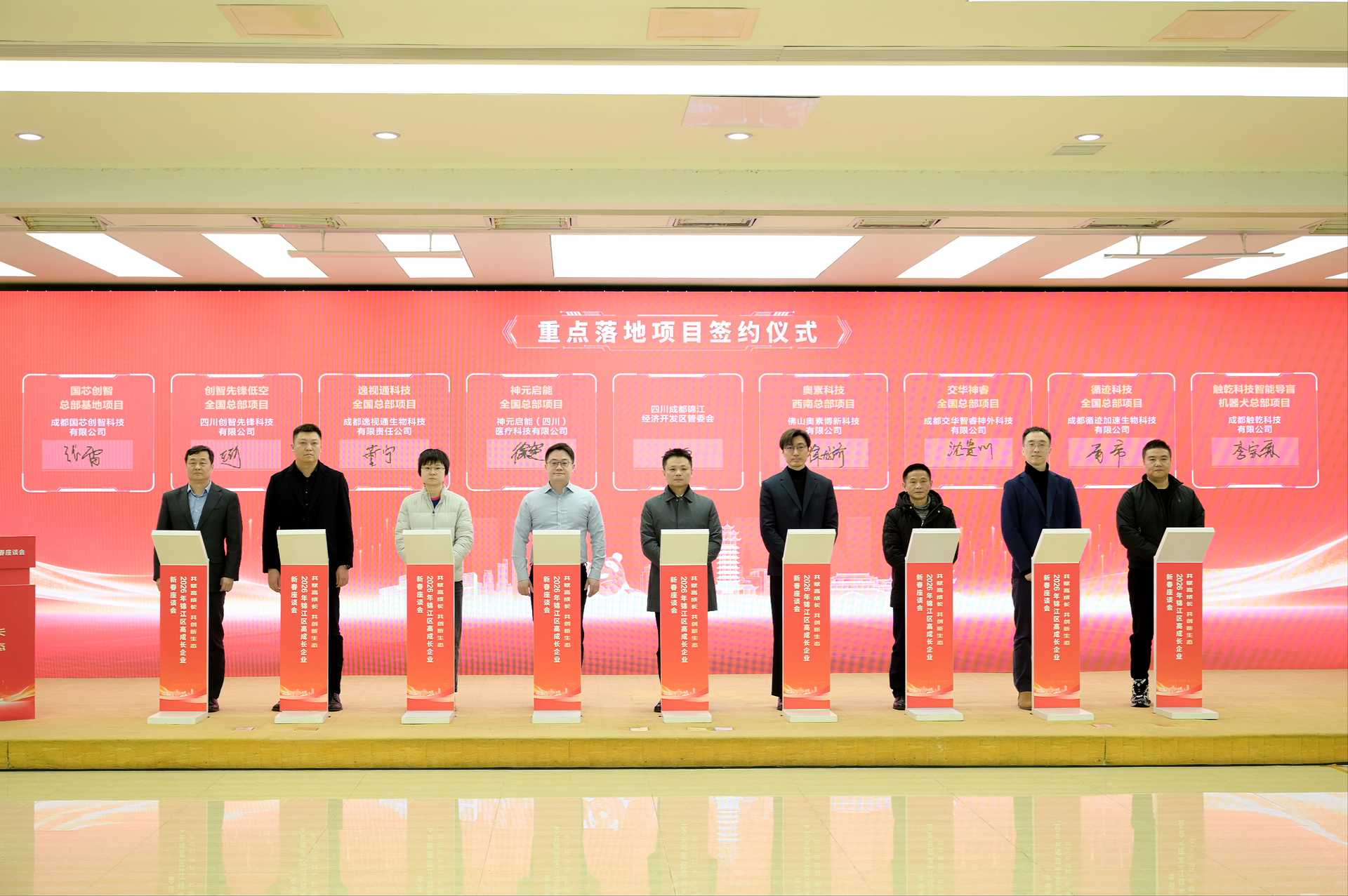 会议解读了《产业焕新指数和高成长企业发展》研究成果和《锦江区科产融合政策工具箱(2026年版)》,首发锦江区2026年第一批智创产品,举行重点落地项目签约仪式并开展政企务实交流。